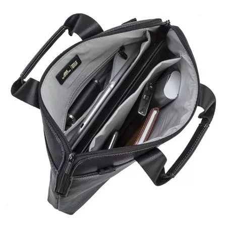 13,3"-os laptopokkal kompatibilis, ultra vékony, kompakt táska. (pl. Macbook Pro és Air 13.3") A táska igényes műbőr felhasználásával készült. A párnázott betétei védelmet nyújtanak az esetleges sérülések ellen. A laptop rekesz mellett tartalmaz egy rekeszt dokumentumok részére és egy továbbit, egy legfeljebb 10,1"-os tablet részére. Belső rekesze iratok és pénztárca tárolásra is tökéletesen megfelel. A táska belsejét kontrasztos, könnyű bélés borítja. Masszív kialakítású, nagy teherbírású táska. Kényelmes, párnázott fogantyúval és levehető, állítható hosszúságú vállpánttal. Anyaga: bőr (PU) Külső méretek (Ma x Szé x Mé): 345 x 250 x 50 mm Belső méretek (Ma x Szé x Mé): 340 x 233 x 30 mm Tömeg: 0.392 kg Gyártó/első EU forgalmazó elérhetősége: Riva Handelsgesellschaft mbH Eschborner Landstraße 55 Frankfurt am Main, 60489, Germany info@rivacase.com www.rivacase.com