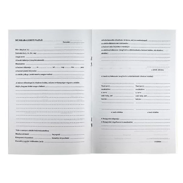 Munkabaleseti napló VECTRALINE. A/5 méretű, 32 lapos, álló, 1 példányos. Minőségi belívvel, karton fedlappal rendelkező nyomtatvány.