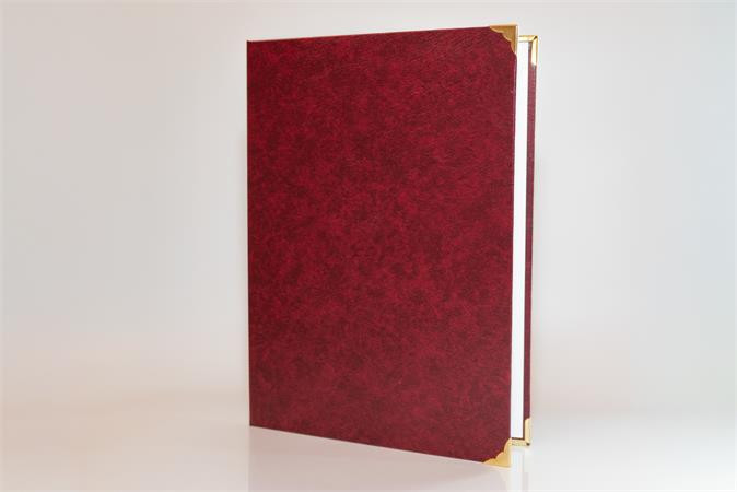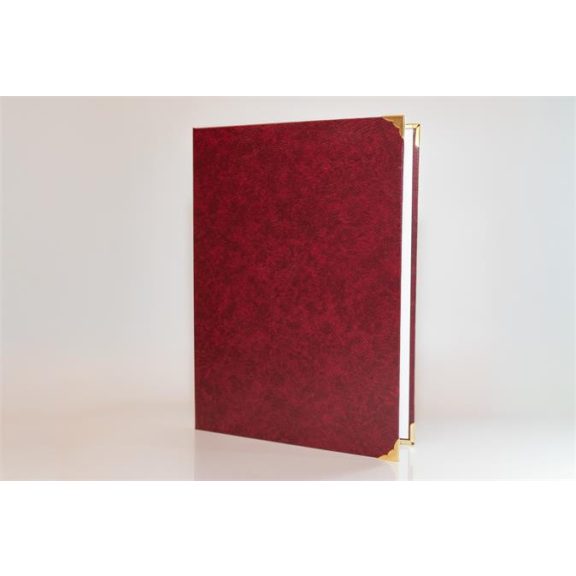 Oklevéltartó, A4, exkluzív, műbőr, 4 fém sarokkal, bordó