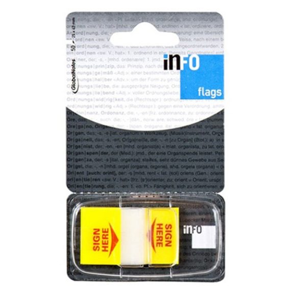 Oldaljelölő GLOBAL Notes "sign here" 7729-11 műanyag 25x43mm sárga 50 lap