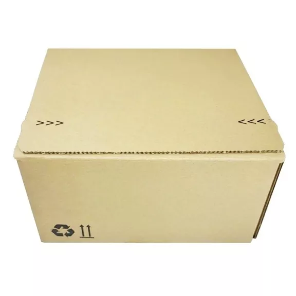Egy mozdulattal összeállítható. Az alja erősített kivitelű. 3 rétegű, ragasztócsíkkal és nyitást könnyítő perforációval ellátott doboz. Fix, nem változtatható magassággal.