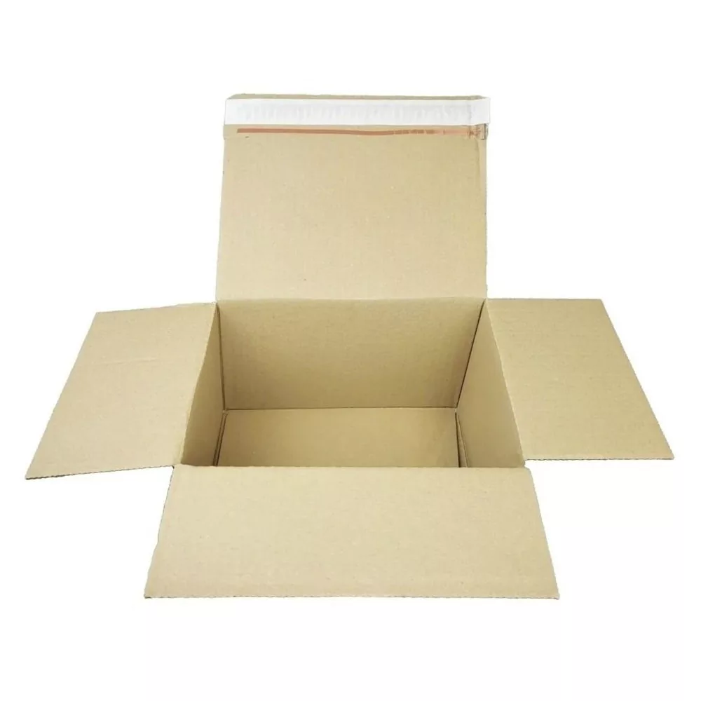Egy mozdulattal összeállítható. Az alja erősített kivitelű. 3 rétegű, ragasztócsíkkal és nyitást könnyítő perforációval ellátott doboz. Fix, nem változtatható magassággal.