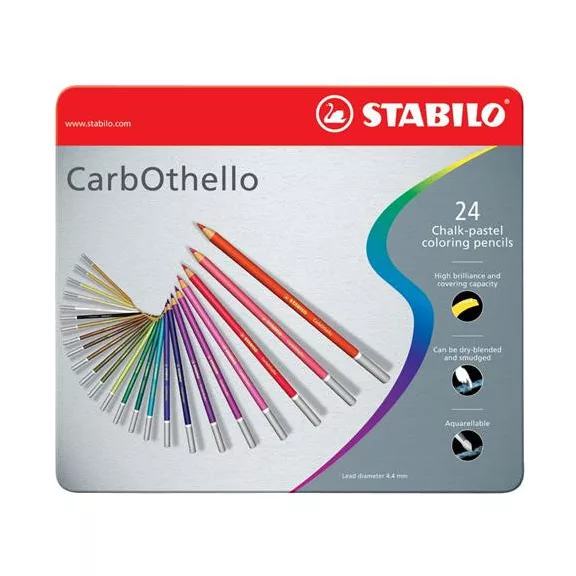 Pasztell ceruza készlet, kerek, fém doboz, STABILO "CarbOthello", 24 különböző szín