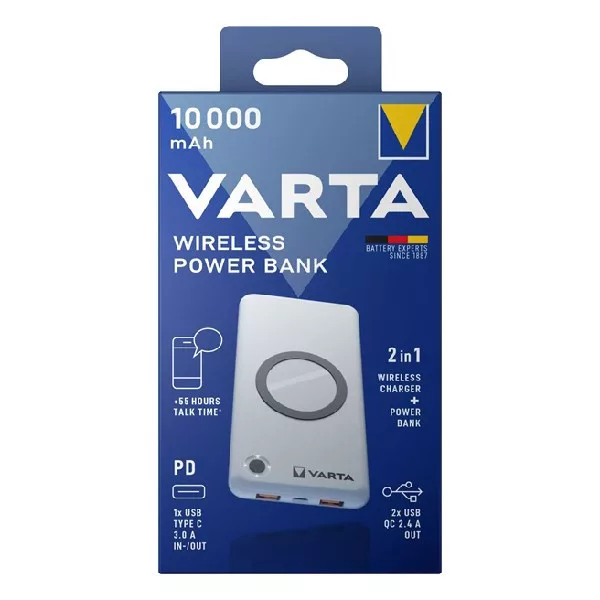 Powerbank VARTA Portable Wireless + vezeték nélküli töltő 10.000 mAh