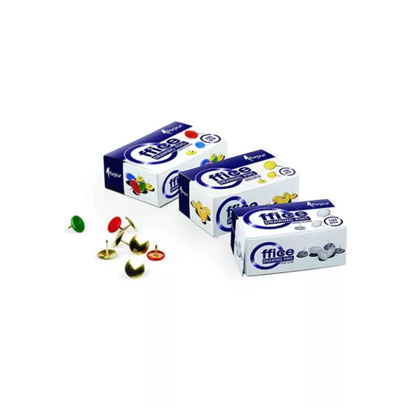 Rajzszeg, színes fejű. 9,5 mm átmérőjű fej. Papírdobozos kiszerelésben. 100 db / doboz.