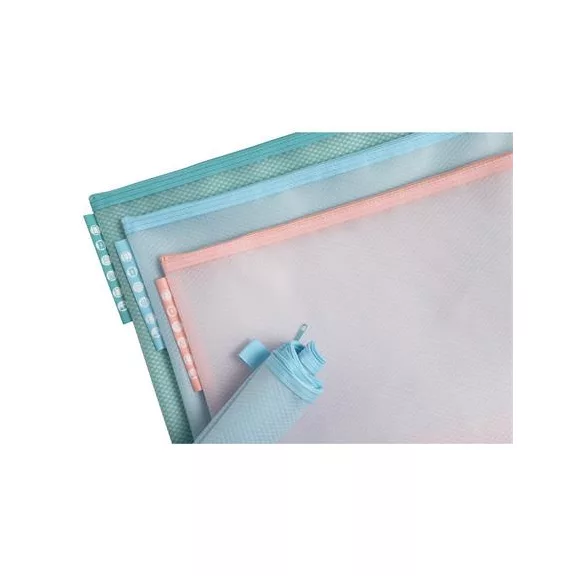 Rendszerező tasak, cipzáras, hálós, A4, EXACOMPTA "Chromaline Pastel", vegyes színek