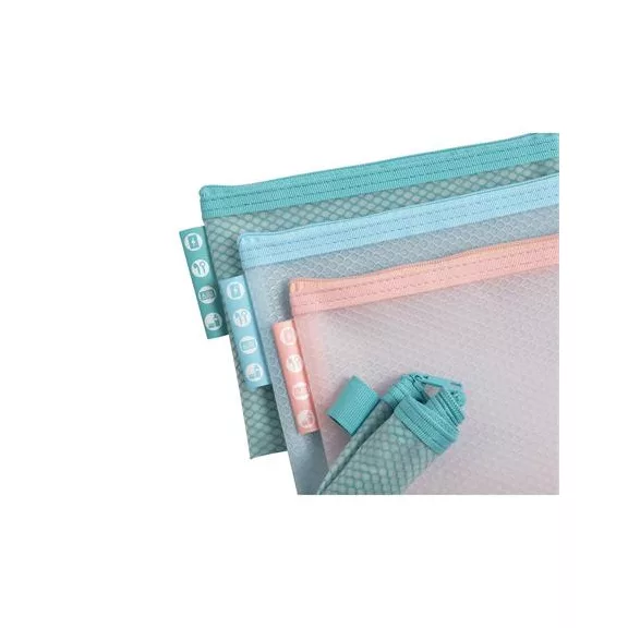 Rendszerező tasak, cipzáras, hálós, A6, EXACOMPTA "Chromaline Pastel", vegyes színek