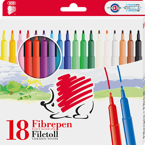 • Vízbázisú festékkel töltött rostirón, átlevegőzős biztonsági kupakkal, rajzolásra, színezésre.