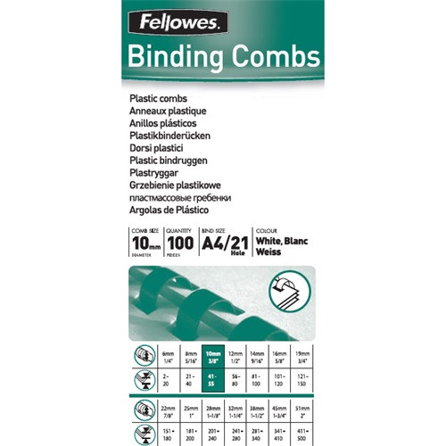 Spirál Fellowes 10 mm 41-55 lap fehér