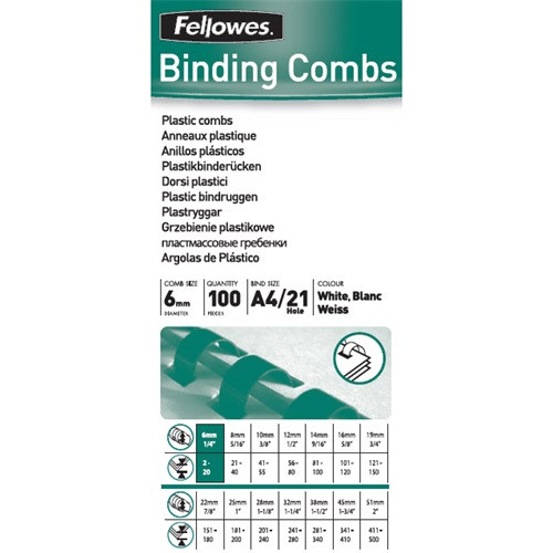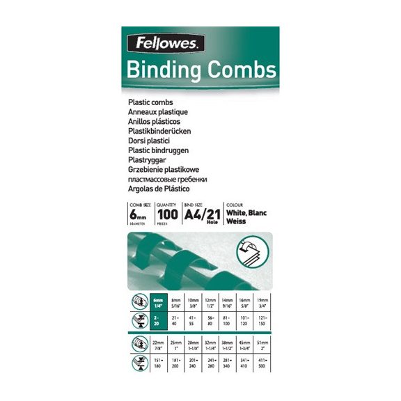 Spirál Fellowes 6 mm 10-20 lap fehér