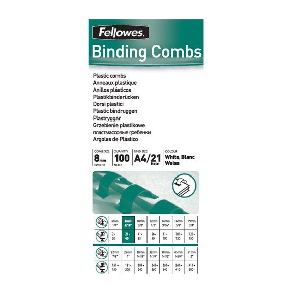 Spirál Fellowes 8 mm 21-40 lap fehér