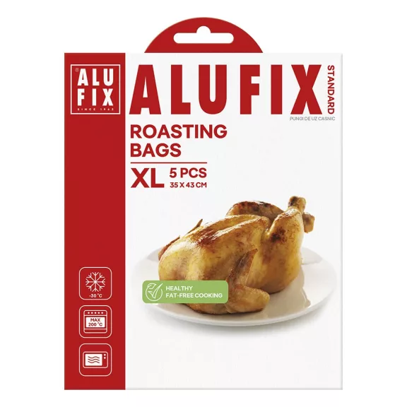 A csomag ideális megoldás húsok, halak, zöldségek és egyéb ételek kíméletes sütéséhez. A hőálló zacskók megőrzik az ételek természetes ízét, szaftosságát és aromáját, miközben megakadályozzák, hogy a sütő vagy a tepsi szennyeződjön. A használata egyszerű és tiszta: az alapanyagokat a zacskóba kell helyezni, lezárni a mellékelt kötözővel, majd a sütőbe tenni. 200 °C-ig hőálló, így biztonságosan használható elektromos és gázsütőben egyaránt. Az ALUFIX sütőzacskó gyors, praktikus és higiénikus megoldás, amely megkönnyíti a sütést és megőrzi az ételek természetes zamatát.