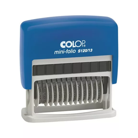 4mm magas karakterekkel 13 számot bélyegez minden számszalag 0-9 számjegyeket, kötőjelet és üres karaktert tartalmaz cserepárna: E/12 Gyártó/első EU forgalmazó elérhetősége: COLOP Stempelerzeugung Skopek GmbH&Co.KG 4600 Wels, Dr.-Arming-Straße 5, Ausztria colop@colop.com www.colop.com
