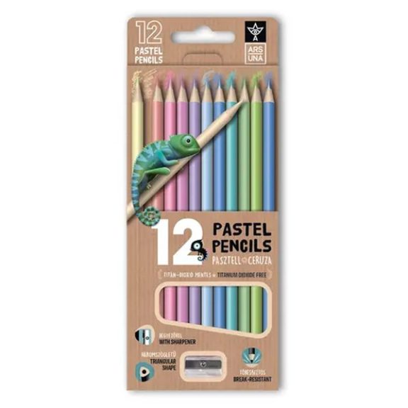 Háromszögletű, pasztell színű, ergonomikus kialakítású színes ceruzakészlet, törésálló ceruzabéllel, TiO2 (titánium-dioxid) mentes ceruzatesttel. 12 darabos kiszerelésben, élénk, jól fedő színekben. A készlet része egy kíváló minőségű hegyező is. A ceruzatest és a ceruzahegy színe megegyezik. A ceruzatest feliratozható a gyermek nevével, osztályával, vagy akár ovis jelével. EURO lyukkal ellátott papír dobozban csomagolva.