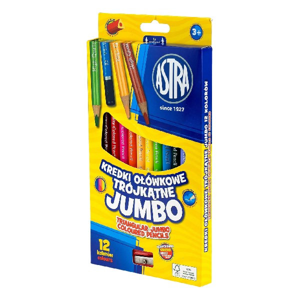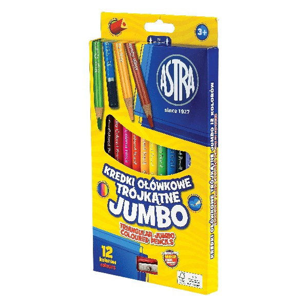 Jumbo háromszögletű színes ceruza készlet, ajándék hegyezővel.