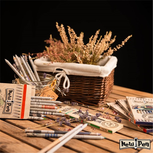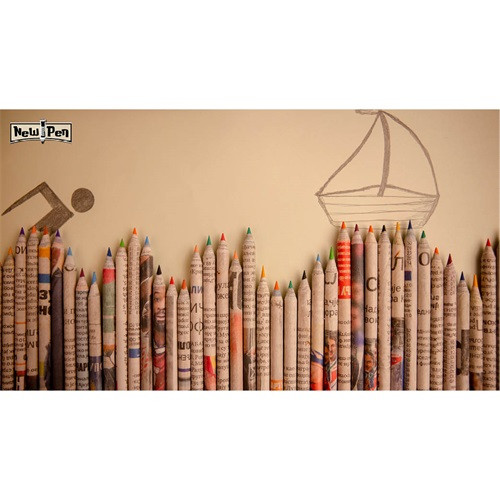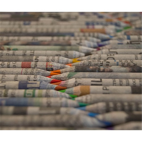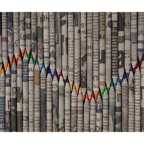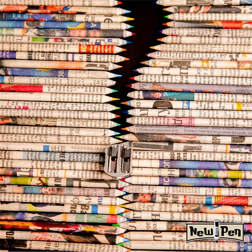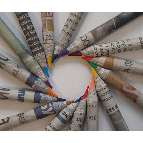Használt újságpapírból készült színes ceruzák.