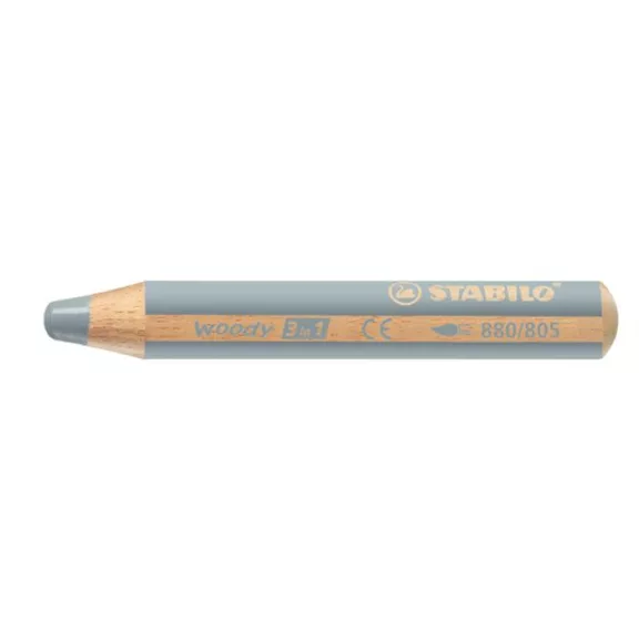 Színes ceruza, kerek, vastag, STABILO "Woody 3 in 1", ezüst