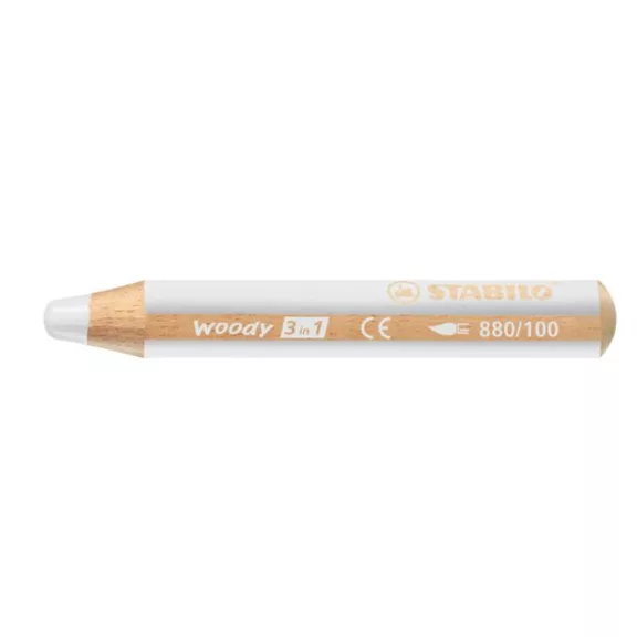 Színes ceruza, kerek, vastag, STABILO "Woody 3 in 1", fehér