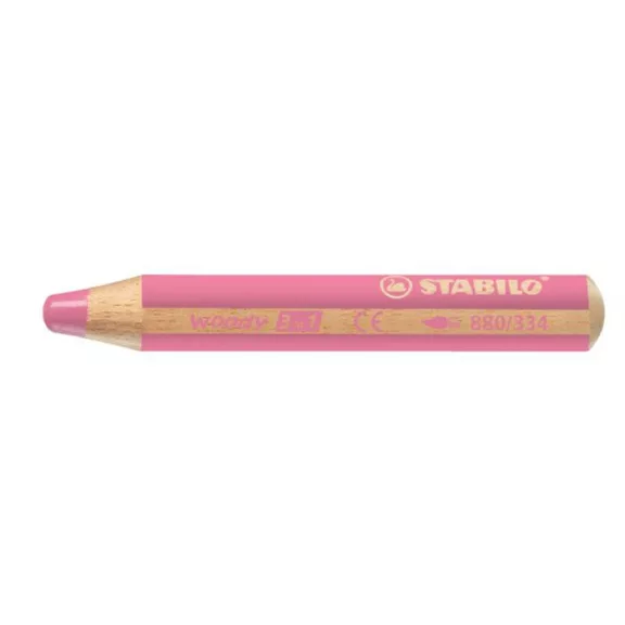 Színes ceruza, kerek, vastag, STABILO "Woody 3 in 1", rózsaszín