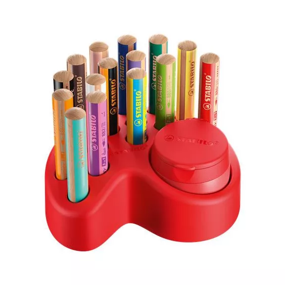 „Minden egy helyen“ woody 3 in 1 élmény: -egyedülálló 3-az-1-ben írószer: színesceruza, vízfesték, zsírkréta egyben -100%-ban PEFC minősített fából készült -XXL méretű hegy: 8 színesceruzának megfelelő színt képes egyszerre felvinni a felületekre -tökéletes nagy felületekhez és szinte minden rajzolási/színezési technikához -vastag formájának köszönhetően ideális kisgyerekeknek: kényelmes fogást tesz lehetővé -kiemelkedő fedés és színek, sötét színű papíron is -törésmentes ceruzabél -használható sima felületekre, üvegre, fémre, bőrre, papírra stb. -ceruzabél átmérője: 10 mm -készlet tartalma: 15 db Woody 3 in 1 színes ceruza, 1 db egylyukú nagy tartályos Woody hegyező, 1 db asztali tartó -játékos desing, masszív, de könnyű anyaghasználat -PEFC-tanúsítvánnyal rendelkező anyagból készült -a készlet színei: -woody 3 in 1 880/100, 880/205, 880/220, 880/310, 880/355, 880/405, 880/533, 880/570, 880/630, 880/750 -woody 3 in 1 Pastel: 880/402, 880/303 -woody 3 in 1 duo: 882/205-450, 882/220-750, 882/334-370 Gyártó/első EU forgalmazó elérhetősége: STABILO international GmbH Magyarországi Fióktelepe 1033 Budapest, Szőlőkert köz 7/a. info.hu@stabilo.com www.stabilo.hu