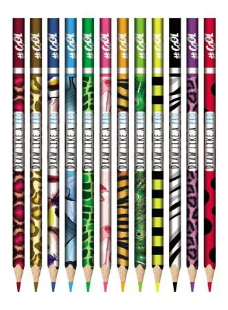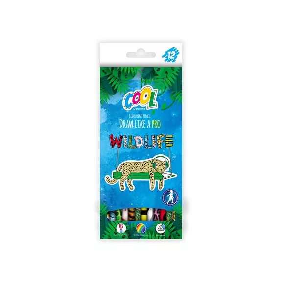 Színes ceruza készlet, háromszögletű, COOL BY VICTORIA "Wildlife", 12 különböző szín