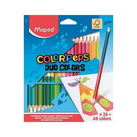 Színes ceruza készlet, háromszögletű, kétvégű, MAPED "Color'Peps Duo", 48 különböző szín