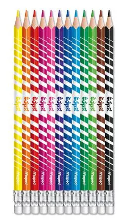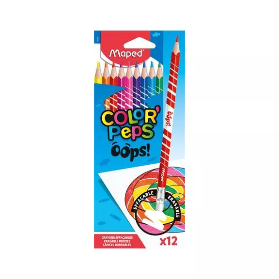 Színes ceruza készlet, háromszögletű, radírozható, MAPED "Color'Peps Oops", 12 különböző szín