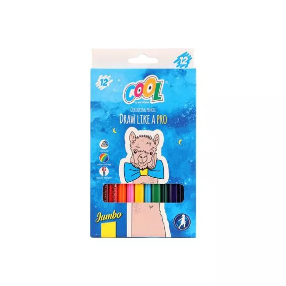 Színes ceruza készlet, háromszögletű, vastag, COOL BY VICTORIA, 12 különböző szín