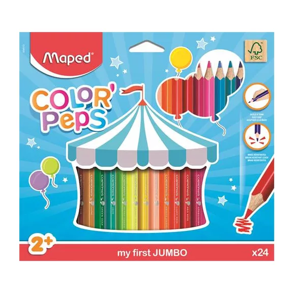 Színes ceruza készlet, háromszögletű, vastag, MAPED "Jumbo", 24 különböző szín