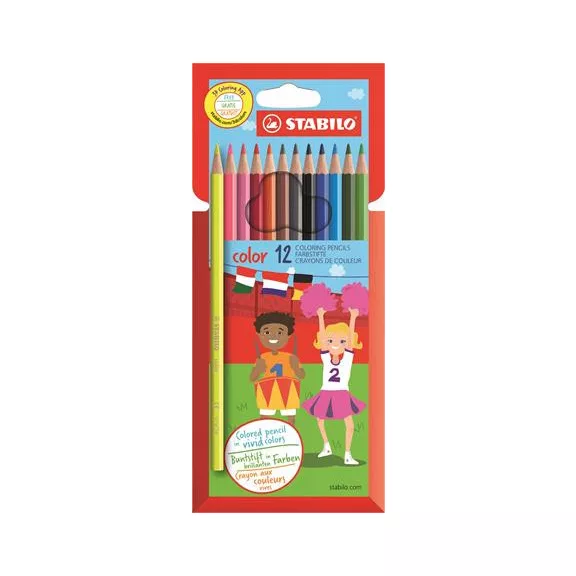 Színes ceruza készlet, hatszögletű, STABILO "Color", 12 különböző szín
