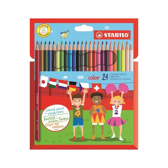 Színes ceruza készlet, hatszögletű, STABILO "Color", 24 különböző szín