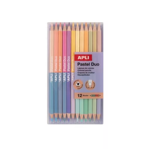 Színes ceruza készlet, kétvégű, háromszögletű, APLI "Pastel Duo", 24 különböző pasztel szín