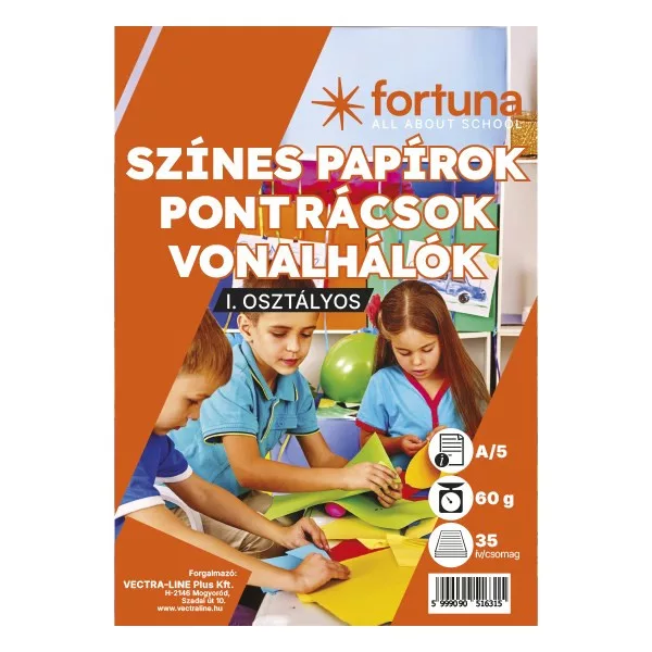 A FORTUNA I. színes pontrácsos papírcsomag elsősök számára készült, hogy megkönnyítse az írás- és olvasástanulás első lépéseit. A pontrácsos elrendezés segíti a betűformák pontos elsajátítását és a szabályos íráskép kialakulását.