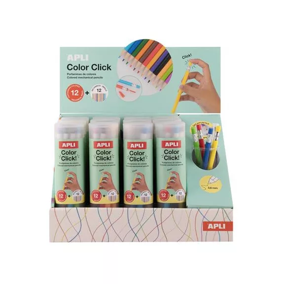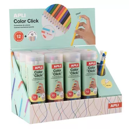 Színes töltőceruza készlet, display, APLI "Color Click", 12 különböző szín, 12 készlet/display