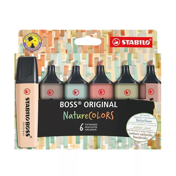 Szövegkiemelő Stabilo Boss Original NatureCOLORS 6 db-os klt. (sárzöld,földzöld,sötétbarna,vörösbarna,bőrszín,szürke)