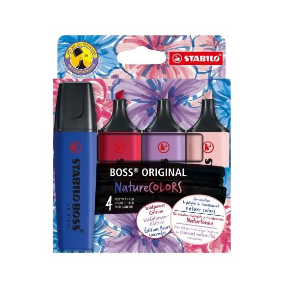 Szövegkiemelő Stabilo Boss Original NatureCOLORS Wildflowers 4 db-os klt.(hajnalpír, utlramarinkék, lila, burgundi)