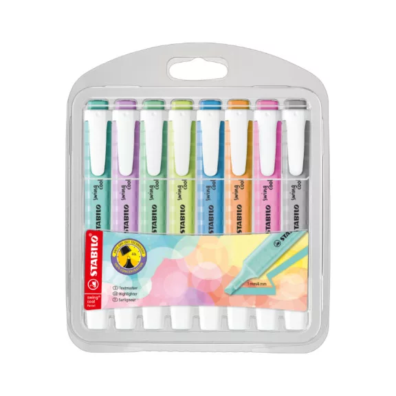 Szövegkiemelő Stabilo swing cool Pastel 8 db-os klt. (türkiz, lila, menta, lime, kék, narancs, málna, szürke)