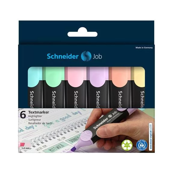 Szövegkiemelő készlet, 1-5 mm, SCHNEIDER "Job Pastel", 6 különböző pasztell szín