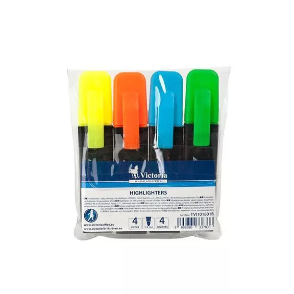 Szövegkiemelő készlet, 1-5 mm, VICTORIA OFFICE, "Color 200", 4 különböző szín