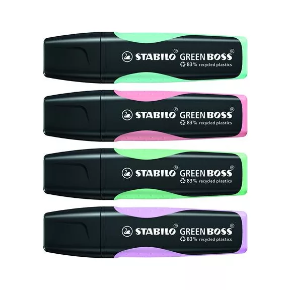 Szövegkiemelő készlet, 2-5 mm, STABILO "Green Boss Pastel", 4 különböző szín