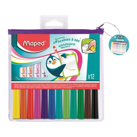 - tábla marker - 12 db élénk, színes filctoll - szárazon törölhető - napokkal később is letörölhető - illatmentes -zipzáras kivitelezés - minden fehér táblára, üvegre, porcelánra használható Gyártó/első EU forgalmazó elérhetősége: MAPED SAS 530 route de Pringy - 74370 Argonay sophie.souillard@maped.fr www.maped.com