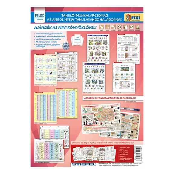 5 db tanulói lap 1 db London Basic facts A3 alátéttel és kék filctollal. A Fixi tanulói munkalapok a magyar oktatásban széleskörűen használt falitérképek és oktatótablók kicsinyített másai, nemcsak az órai munkát, hanem az otthoni gyakorlást is megkönnyítik. Minden munkalap írható-letörölhető, cseppálló fóliabevonattal készül, a lyukasztás pedig megkönnyíti a gyűjtését és tárolását a lapoknak. Az A3 méretű alátéten Londonnal kapcsolatos ismeretek találhatók.