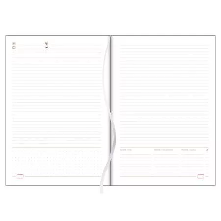 Két harmonizáló színű, bőrhatású anyag egyedi összeillesztésével, gyönyörű varrással készült agendák nagy méret-és színválasztékban. -matt, bőrhatású borító -lapok 70 g/m2, fehér ofszetpapírból -szürke-vörös nyomat -személyes információk -tárgyalások jegyzéke -tárgyalási napló oldalak -dátum nélküli napi beosztás -144 oldal -hőre színeződő anyagból készült borító: vakdombor nyomás esetén különösen szép hatás érhető el -szitázással, vakdombor és présfólia nyomással emblémázható Tárgyalási napló felépítése: -személyes információk -tárgyalások jegyzéke -tárgyalási napló oldalak