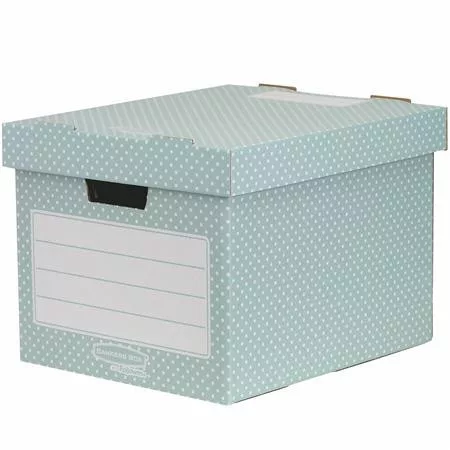 Esztétikus tároló dobozok, akár 4 db is egymásra helyezhető. -FastFold automatikus összeszerelés funkcióval- az egyszerű és gyors összeszerelés érdekében -összehajtható, így helytakarékosan tárolható -modern formatervezésének köszönhetően jól mutat otthon és irodában egyaránt -ideális A4 méretű lapok, füzetek, könyvek, tasakok tárolására -kényelmes fogantyúkkal ellátott, a könnyű mozgatás érdekében -nagy címketerülettel ellátott, így könnyen beazonosítható a tartalma -FSC tanúsítvánnyal rendelkező 100%-ban újrahasznosítható kartonból készült -külső méretek: 33,3 x 28,5 x 39 cm (Sz x M x M) -4 darab / csomag Gyártó/első EU forgalmazó elérhetősége: Fellowes Holdings B.V. Gesworehoekseweg 3a 5047 TM Tilburg, Neatherlands CS-benelux@fellowes.com www.fellowes.com