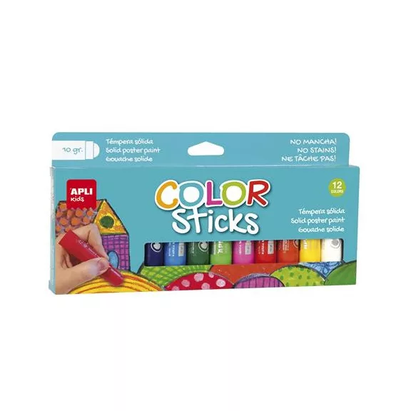 Tempera kréta készlet, APLI Kids "Color Sticks", 12 különböző szín