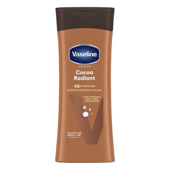 A Vaseline Cocoa Radiant testápoló segít helyreállítani a száraz bőrt, ragyogó és egészséges kinézetű megjelenést biztosít zsíros érzet nélkül. Kakaó- és sheavajjal gazdagított, mely elősegíti a bőr természetes ragyogását. Fedezd fel a hidratálás és a bársonyos puhaság élményét minden nap!