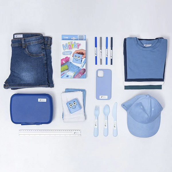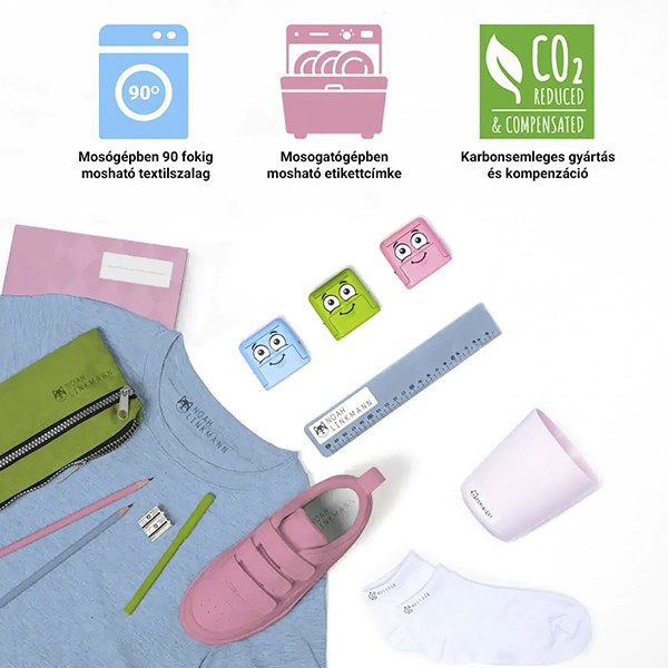 A csomagban lévő vasalható szalag a sötét ruhákon teszi láthatóvá a jelölést. A címkéket használja kulacsra, tolltartóra, táskára.