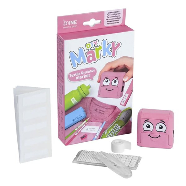 Praktikus, kirakós textil bélyegző a gyermekek ruháinak, tárgyainak megjelölésére. A betűkészletből kirakható a név, piktogramokkal színesítve. A csomagban lévő vasalható szalag a sötét ruhákon teszi láthatóvá a jelölést. A címkéket használja kulacsra, tolltartóra, táskára.