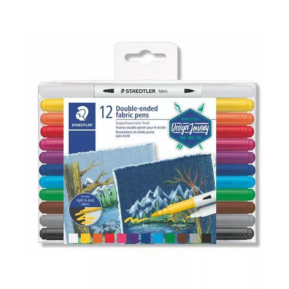 Design Journey - kétvégű textilfilcek, melyek kiválóan alkalmasak a különböző textíliák, mint pl. ruhák, táskák, vászoncipők egyediesítésére. Írásra, rajzolásra és jelölésre egyaránt használhatók. -a legtöbb világos és sötét szövethez -nem szükséges hőkezelés a tinta rögzítéséhez - hagyja a tintát 24 órán át száradni -a nagyobb színlefedettség érdekében a tinta száradása után további rétegeket kell felvinni -a világos szövetek: 60°C-ig moshatók, a sötét szövetek: nem moshatók Gyártó/első EU forgalmazó elérhetősége: STAEDTLER SE Moosäckerstr. 3, 90427 Nuremberg, Germany https://www.staedtler.com/intl/en/service/contact/ http://www.staedtler.com