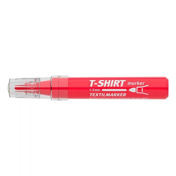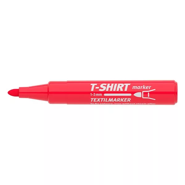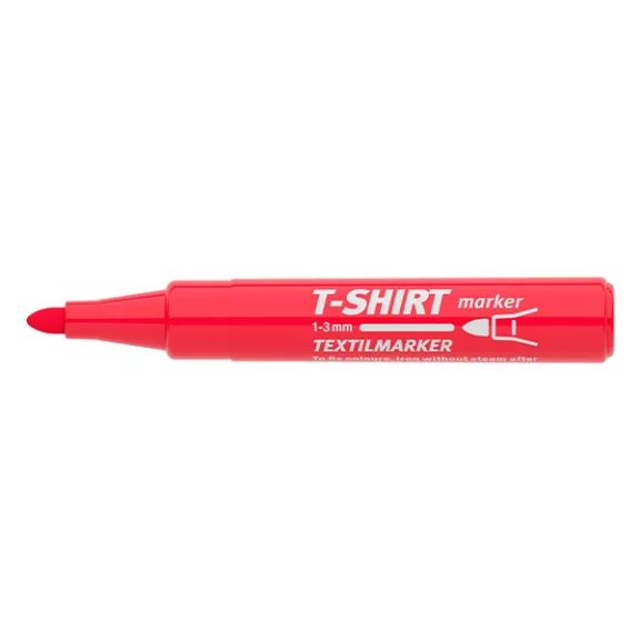 Textilmarker, textiliák pl:selyem,pamut,vászonra.Pl: tornacipő, póló, táska írására,jelőlésére alkalmas.Kerekített csúccsal, vízbázisú festékkel töltve, rendkívüli színtartóssággal és magas fényállósággal.A dekoráció rögzítése gőzmentes bevasalással történik. Rögzítés után 60 °C-ig mosható. Vonalvastagság: 1-3 mm.